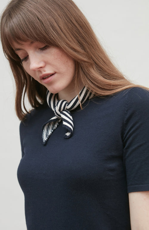 Mens Ultra Fine Cotton Knitted Narrow Breton Stripe T-Shirt -